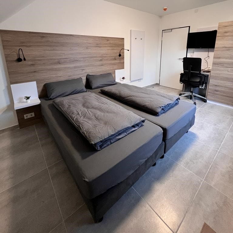 In unserem Hostel erwartet Sie ein komfortables Doppelbett-Zimmer, das Ihnen die Möglichkeit bietet, die Doppelbetten bei Bedarf in zwei separate Einzelbetten umzuwandeln. Mit WLAN-Zugang und einem Fernseher ausgestattet, garantiert dieses Zimmer sowohl Gemütlichkeit als auch Flexibilität für Ihren Aufenthalt in Oyten.n.