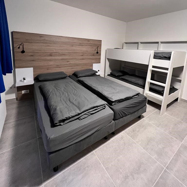 Our quad room is the perfect choice for larger groups or families traveling together. In this spacious room, you'll find four comfortable beds, providing ample space for everyone to rest and relax. Equipped with Wi-Fi and a TV, we offer you all the amenities you need for a pleasant stay. This room allows you to share collective experiences while still enjoying enough privacy to make the most of your time in Oyten.