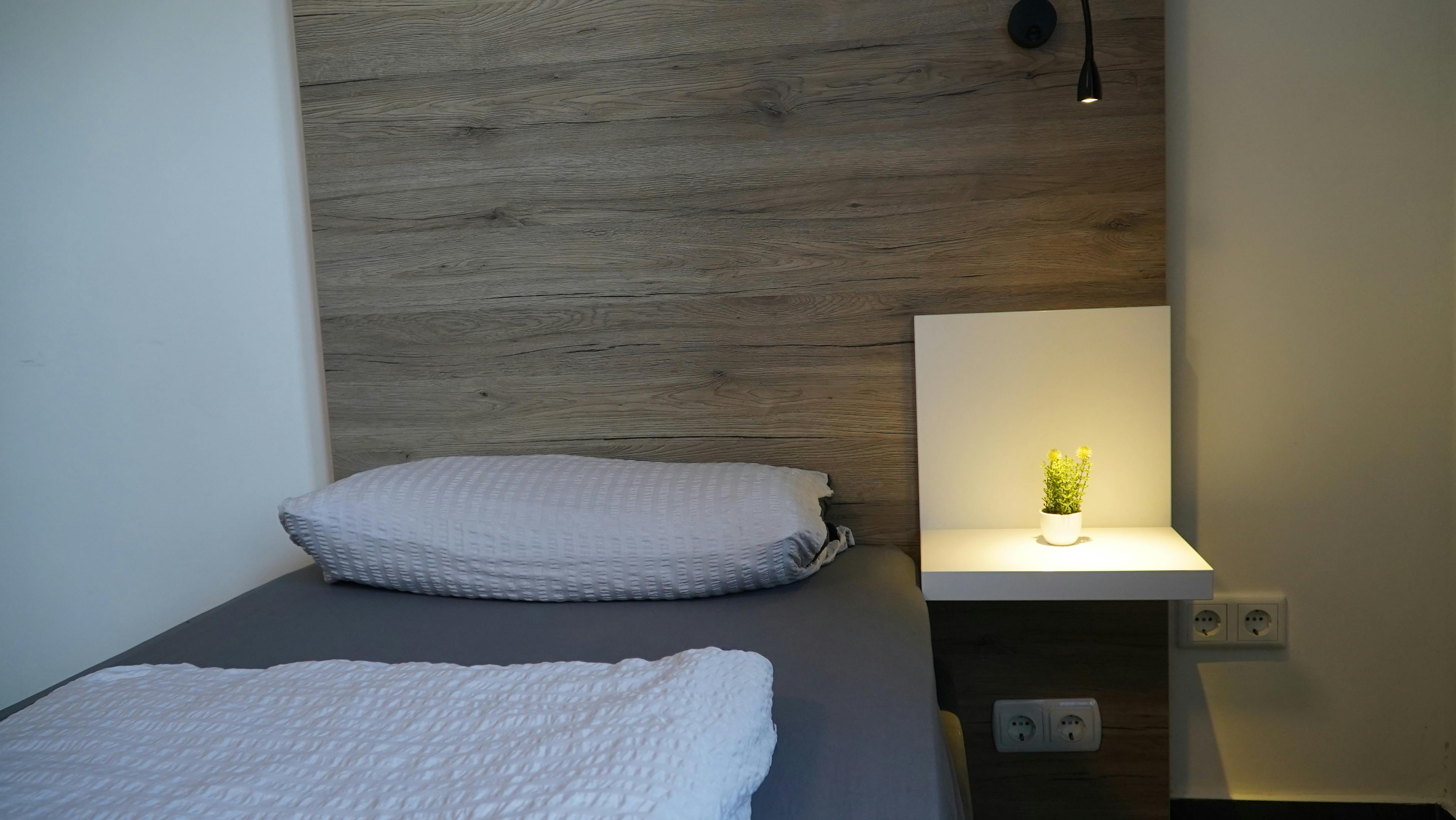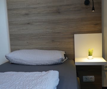 Our single bed room is a compact oasis of peace and convenience. Furnished with a comfortable single bed, Wi-Fi access, and a TV, this room provides everything you need for a pleasant stay. It's perfect for solo travelers or business guests seeking a cozy accommodation in Oyten. Relax in your own little retreat and enjoy all the amenities we have to offer.
